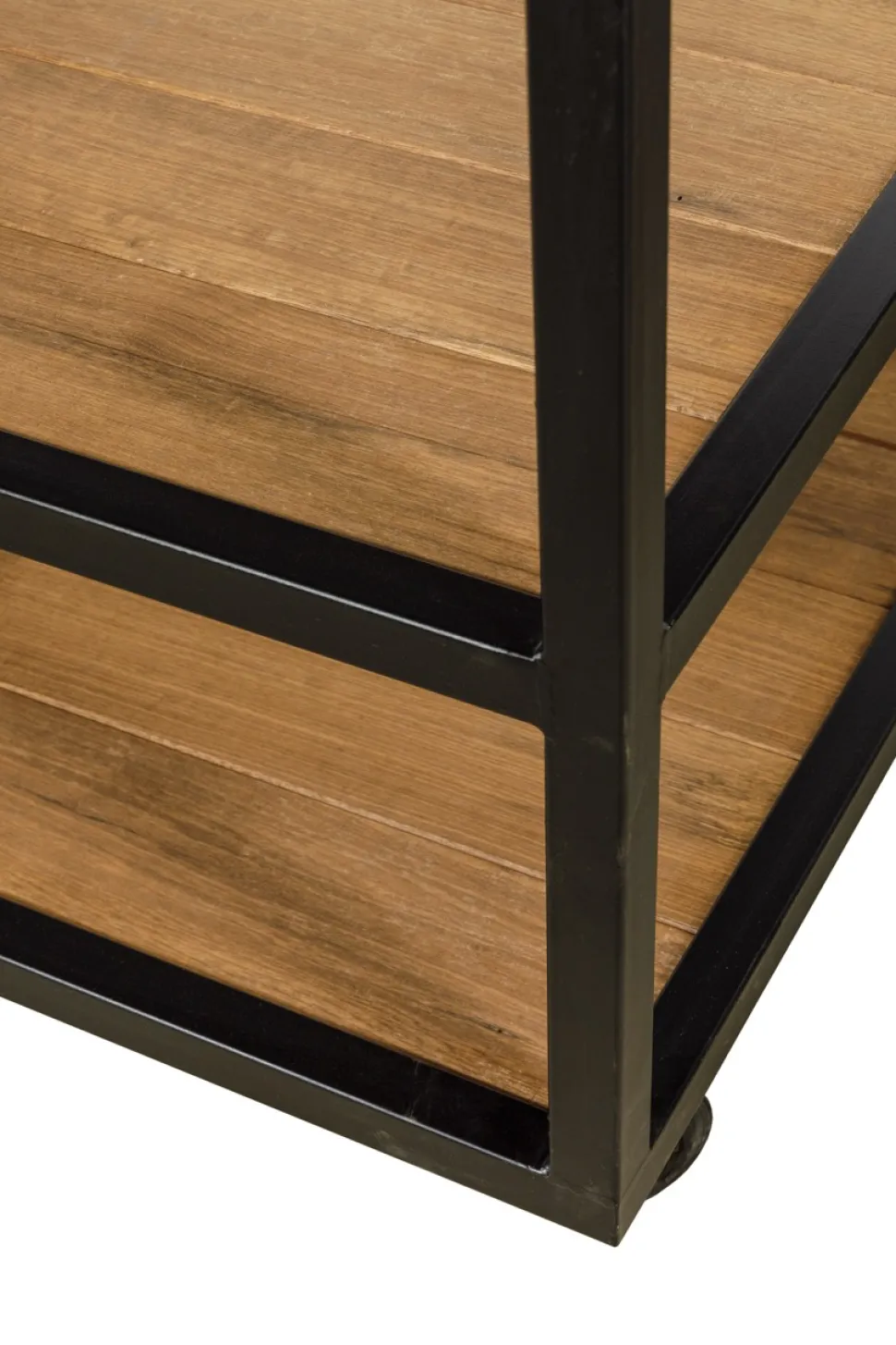 Het zwarte stalen frame is gepoedercoat, wat zorgt voor uitstekende bescherming tegen de elementen. Hierdoor is de tafel geschikt om het hele jaar buiten te gebruiken. De inleg is gemaakt van Frakéhout uit Afrika, een duurzame en milieuvriendelijke houtsoort met een natuurlijke en stijlvolle uitstraling.