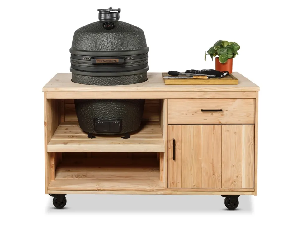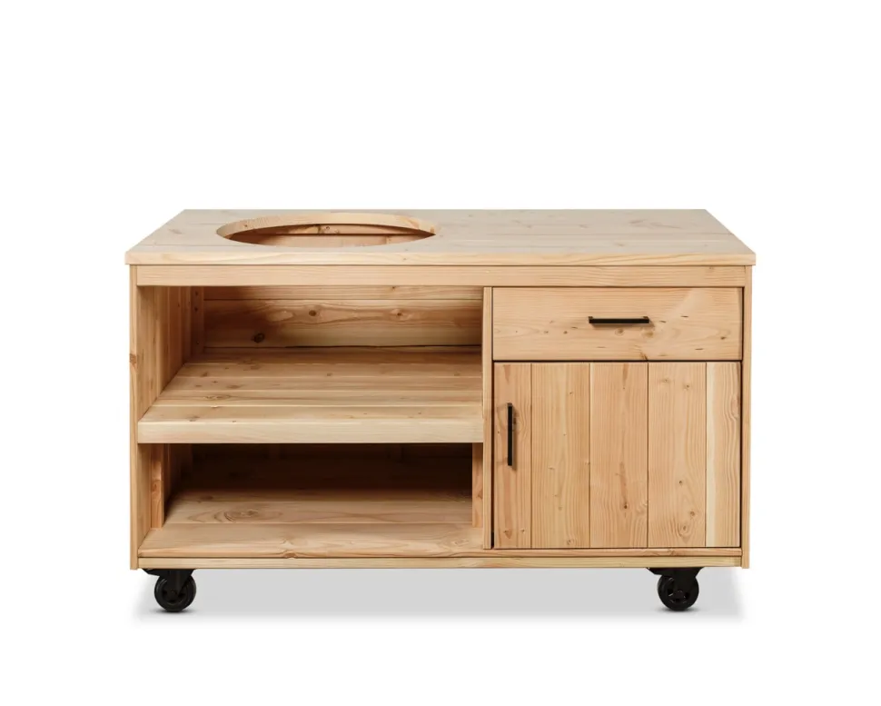 Met afmetingen van 146 x 70 x 90, een ruime kast en lade, biedt de tafel voldoende ruimte voor jouw kamado en accessoires. De kamado zet je stabiel in een tafelnest of op. Bovendien is de tafel gemakkelijk te verplaatsen dankzij vier stevige zwenkwielen, waarvan twee voorzien zijn van een rem. Perfect voor flexibel gebruik in je tuin of op je terras.
