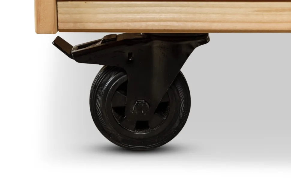 - Vier stevige zwenkwielen, waarvan twee geremd, voor eenvoudige verplaatsing.