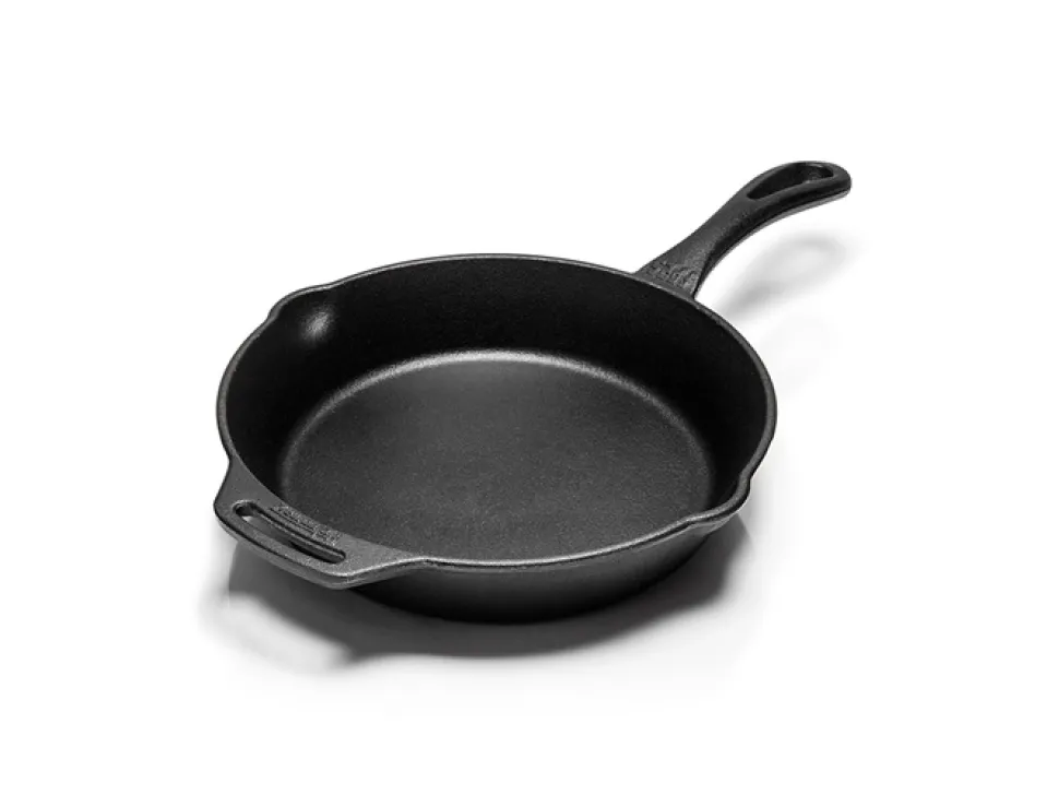 Deze Skillet heeft een diameter van 20 centimeter en een gewicht van 1.8 kg. Hiermee is dit een vrij compacte skillet die gemakkelijk mee te nemen is. Het formaat is perfect voor kleine bijgerechten of voor het grillen voor 1-2 personen.