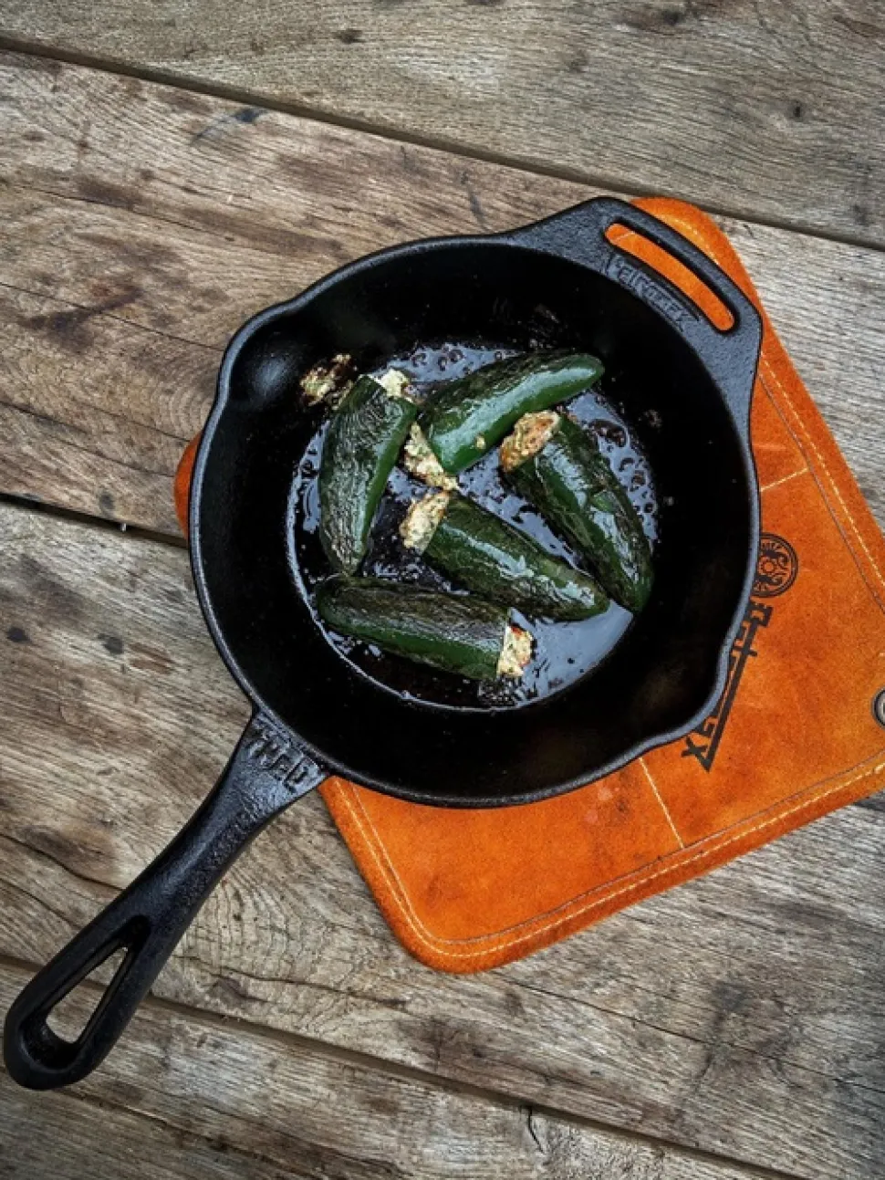 Schuif een Petromax Armide handle door hem simpelweg om de steel van de pan heen te schuiven. Zo hoef je niet continu handschoenen te dragen maar kan je wel gemakkelijk en snel werken met je Gietijzeren Skillet.