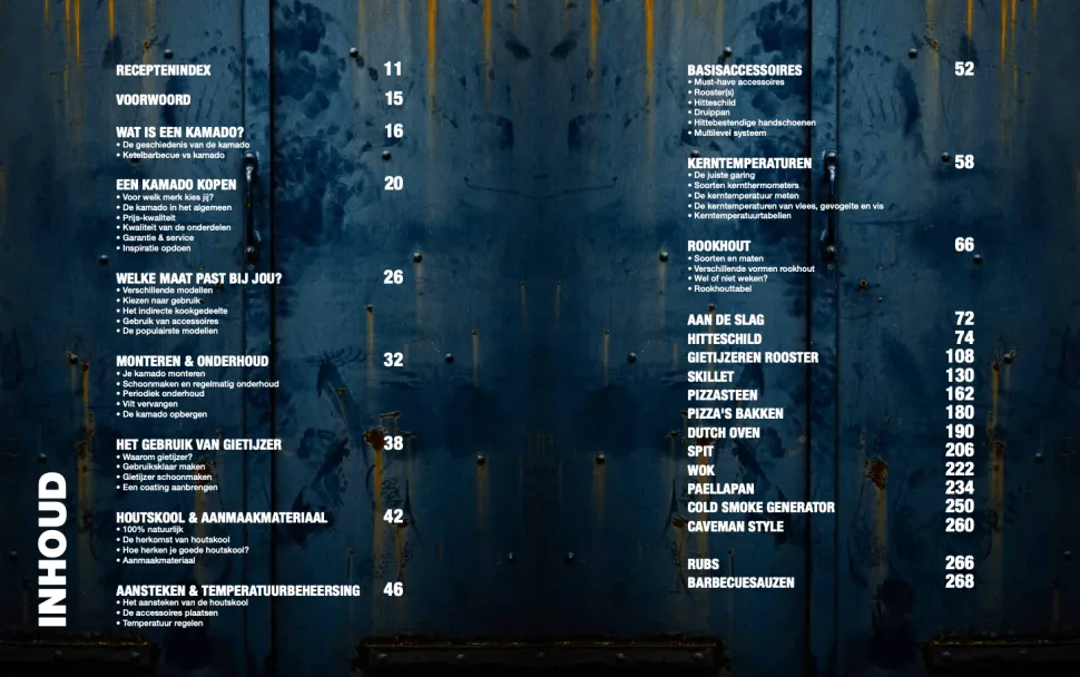 De recepten in het boek zijn handig ingedeeld per accessoire. Zo ontdek je al snel voor welke recepten je bijvoorbeeld een skillet, een pizzasteen of een gietijzeren rooster kunt gebruiken. Op deze manier leer je niet alleen je kamado, maar ook de accessoires goed kennen. Op basis van deze kennis zul je zien dat je in no time zelf gaat experimenteren met varianten op de recepten en technieken die in dit boek zijn opgenomen. Het motto van het boek is dan ook: Leer koken op een keramische BBQ, in plaats van recepten te volgen!