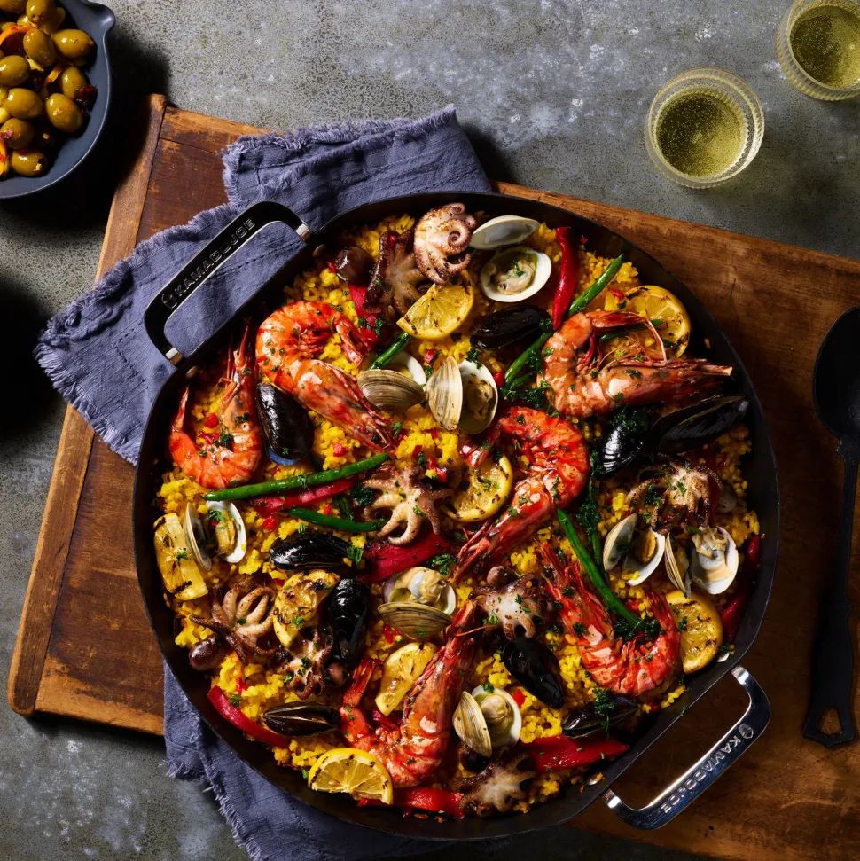 - De paellapan van hoogwaardig carbon staal is perfect om echt Spaanse paella’s te bereiden