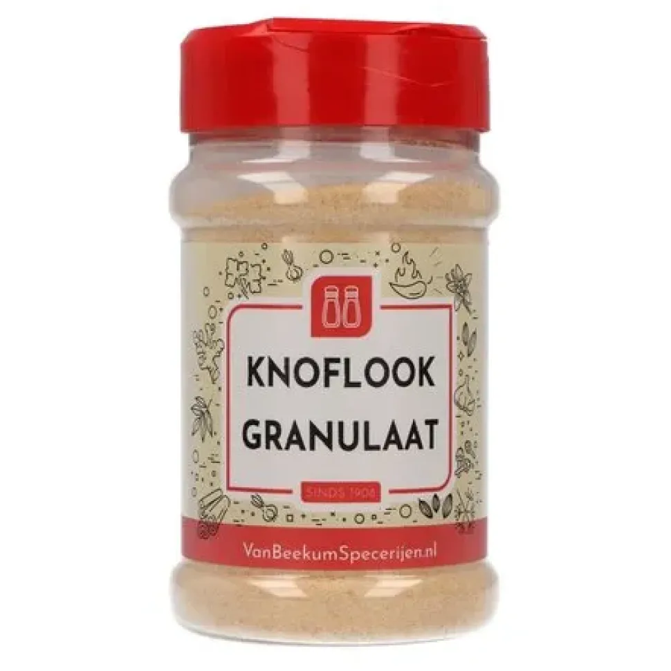 Knoflookgranulaat kan worden toegevoegd aan sauzen, vleesgerechten en heerlijke soepen om extra smaak toe te voegen. Een handige tip: een verse teen knoflook komt ongeveer overeen met één achtste theelepel knoflookpoeder of een halve theelepel knoflookgranulaat.