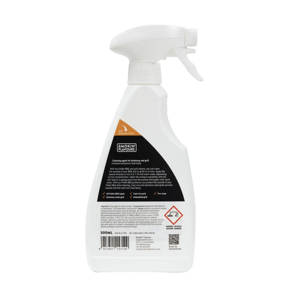Met de Pellet BBQ & grill reiniger bescherm je na het reinigen de buitenkant van je Pellet BBQ. Roosters van gietijzer en RVS kan je daarna het beste met behandelen. De pellet BBQ & grill reiniger is geschikt voor iedere pellet BBQ. De inhoud bevat 500ml.