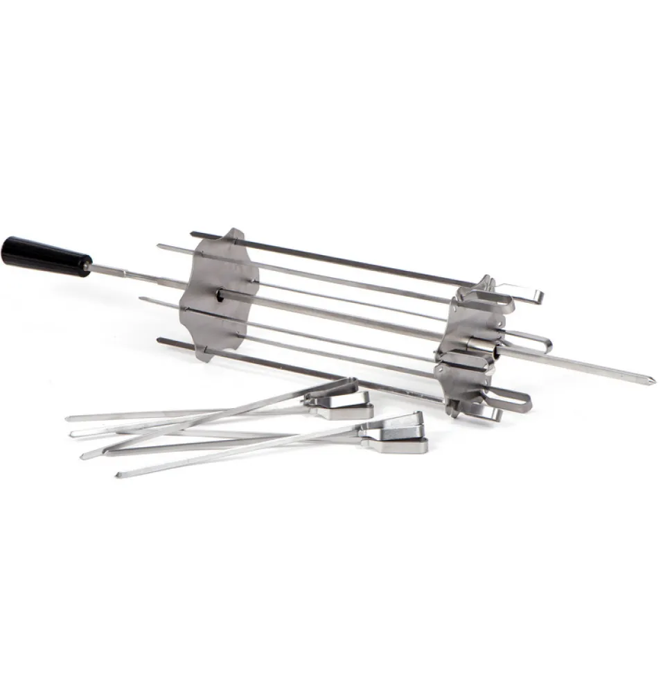 Braad je vlees en groenten helemaal gelijkmatig door The Spit on Fire Spiesenset! Zo blijft de smaak er heerlijk inzitten. Met de spiesenset kan je maar liefst 6 spiesen op je kamado braden, zo geniet je samen van heerlijke gerechten.