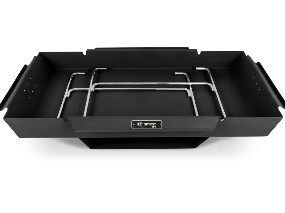 De combinatie van frisse lucht en avontuur maakt je hongerig: trakteer jezelf op iets hartigs door de Petromax Vuurbrug te combineren met de Vuurtrog of door de Petromax Driepoot boven de stalen vuurschaal te plaatsen om steaks te grillen met onmiskenbare grillstrepen op het hangende rooster. De trog kan tot 100 kg kookgerei dragen.