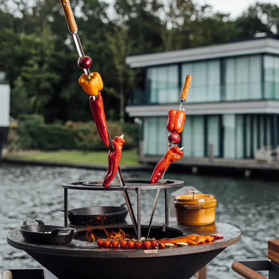 Met de OFYR Brazilian 100 ring kook je vlees op Braziliaanse wijze. De ring bevat inkepingen om de spiesen verticaal te plaatsen. Deze techniek maakt een langzame en gevarieerde bereiding van het vlees mogelijk, evenals een gerookte smaak dankzij de plaatsing boven het vuur. De Braziliaanse ring moet na gebruik worden schoongemaakt en op een veilige plaats worden bewaard.
