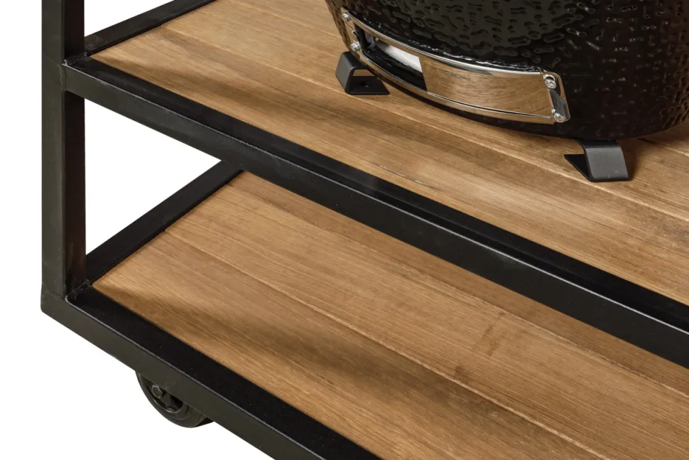 Met afmetingen van 146 x 70 x 90 cm, een ruime kast en lade, biedt de tafel voldoende ruimte voor jouw kamado en accessoires. De kamado zet je stabiel in een tafelnest of op. Bovendien is de tafel gemakkelijk te verplaatsen dankzij vier stevige zwenkwielen, waarvan twee voorzien zijn van een rem. Perfect voor flexibel gebruik in je tuin of op je terras.