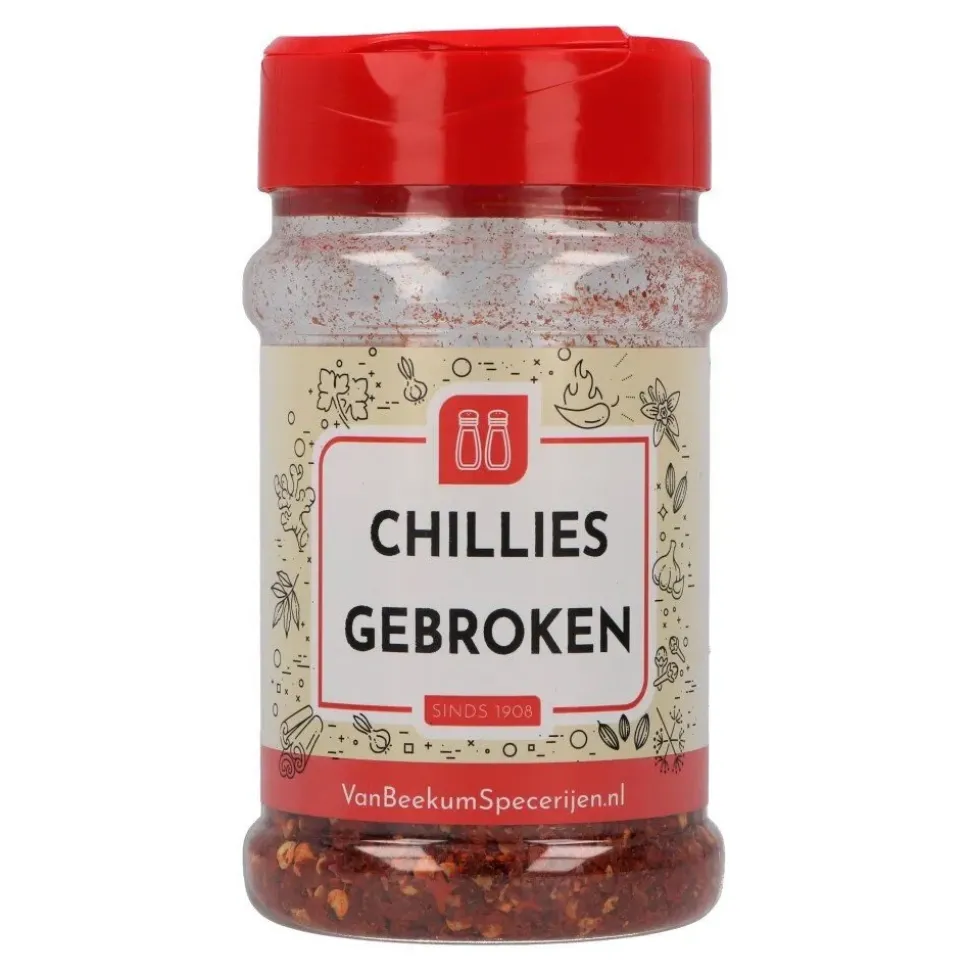 Wanneer je iemand bent die wel van een beetje pit in je eten houdt, dan mag je chilivlokken, oftewel chillies gebroken, niet missen in jouw keuken! Deze gebroken chillie’s zijn namelijk dé manier om je gerechten een flinke dosis ‘hitte’ te geven. Het mooie van chilivlokken is dat de hele chilipeper gemalen is, inclusief de zaadlijsten. Hierdoor zijn ze niet alleen ontzettend lekker, maar ook nog eens erg veelzijdig.