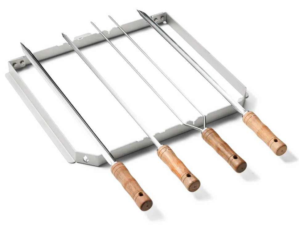 Spies de lekkerste stukken rundvlees, kip of groente aan de churrasco spies van Braaimaster! Deze spies past perfect in het , in dit frame zitten gleuven waar de spies in valt.