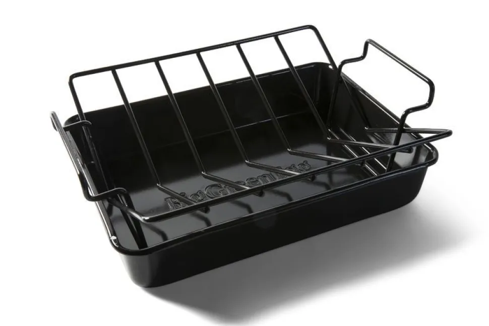 Zet je het Ribs and Roasting Rack in de Rectangular Drip Pan, dan vangt de Drip Pan al het vet en vocht op dat tijdens het garen vrijkomt. Zo belandt het niet op je convEGGtor of houtskool. Hou je van netjes braden, grillen en roken? Dan is deze rechthoekige pan van 35 x 26 centimeter voor jou de perfecte match.
