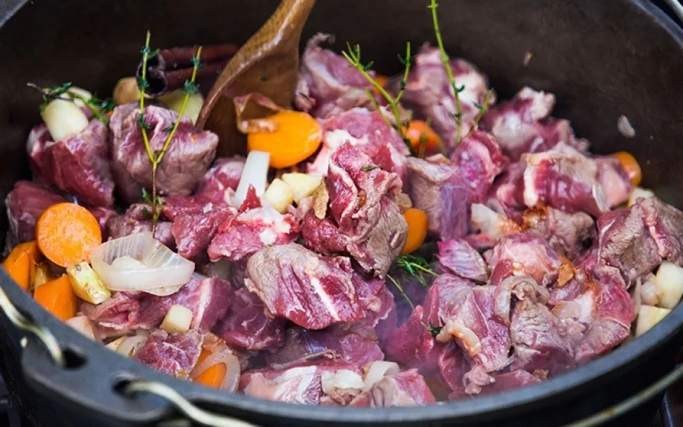 Deze gietijzeren allrounder is op alle fronten inzetbaar. De Big Green Egg Cast Iron Dutch Oven is ideaal voor stoofschotels, stamppotten, soepen en eenpansgerechten. Het gietijzer verdeelt de warmte over de hele pan en de zware deksel van de Cast Iron Dutch Oven houdt het vocht binnenboord. Of gebruik hem zonder deksel en geef al je ingrediënten die unieke Big Green Egg-smaak. In beide gevallen blijft je suddervlees heerlijk sappig en mals. Benieuwd? Kom over 4 uur maar terug…