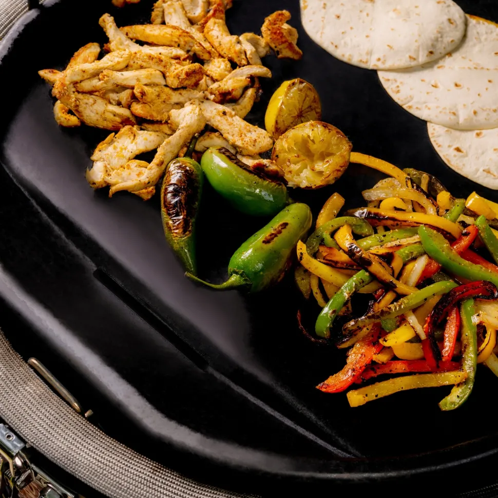 Met de Griddle uit de Karbon Steel-collectie van Kamado Joe heb je nu nog meer mogelijkheden. Met deze inzet transformeer je je grill moeiteloos tot een ruime, platte bakplaat, ideaal voor het bereiden van ontbijt, het dichtschroeien van vlees en groenten, of het bakken van je favoriete gerechten. Gemaakt van lichtgewicht en geleidend koolstofstaal, warmt deze bakplaat snel op en behoudt hij een gelijkmatige temperatuur, waardoor een consistente bereiding elke keer weer gegarandeerd is.