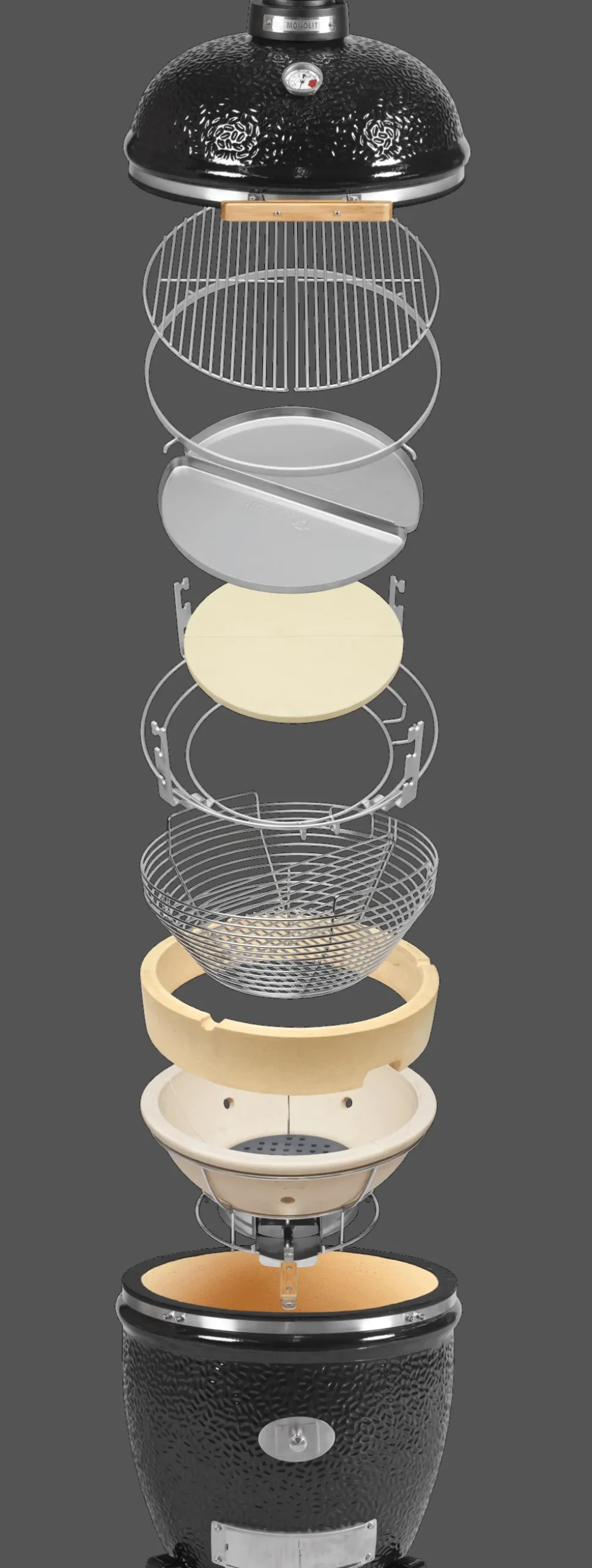 Over het algemeen zijn alle componenten van de Monolith keramische barbecue ontworpen voor een goed luchtdicht systeem. De hoogwaardige en nauwkeurige afdichting en de gietijzeren ventilatiekap zorgen ervoor dat de temperaturen in de keramische barbecue nauwkeurig en zonder schommelingen te regelen zijn.