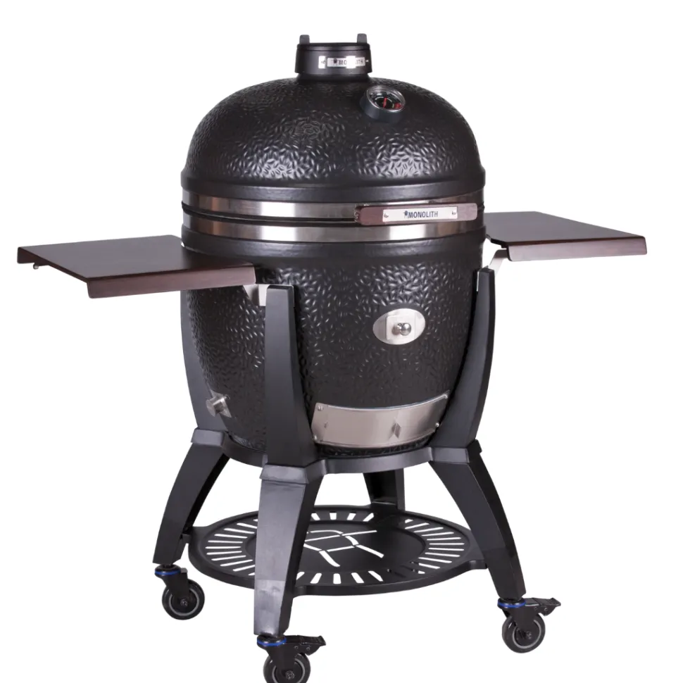 De Monolith Avantgarde Le Chef heeft alles wat je op een kamado wenst! Een degelijk robuust onderstel wat zich goed verhoud op verschillende soorten ondergrond, LED verlichting in de handgreep, roestvrijstalen beslag en natuurlijk een hoogwaardig keramiek wat de warmte goed verdeeld. Tevens ziet de matzwarte finish van de kamado er super gelikt uit in je tuin!