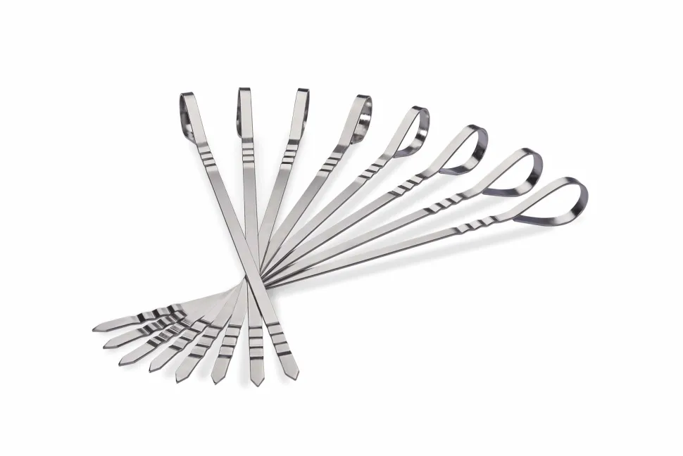 Speciale maaltijden zijn eenvoudig: schuif uw favoriete vlees en groenten op deze spiesen. Kook over directe warmte voor perfecte schroeipatronen of grill indirect voor een wat langzamer gebraden en malsere bereiding. U hoeft zich nooit zorgen te maken dat uw voedsel eraf glijdt en in de grill valt. De gerimpelde uiteinden houden alles op de spiesen vast, voor perfect grillen. Met de acht RVS multifunctionele spiesen van Napoleon zal het u nooit aan ideeën voor een gemakkelijke maaltijd ontbreken.