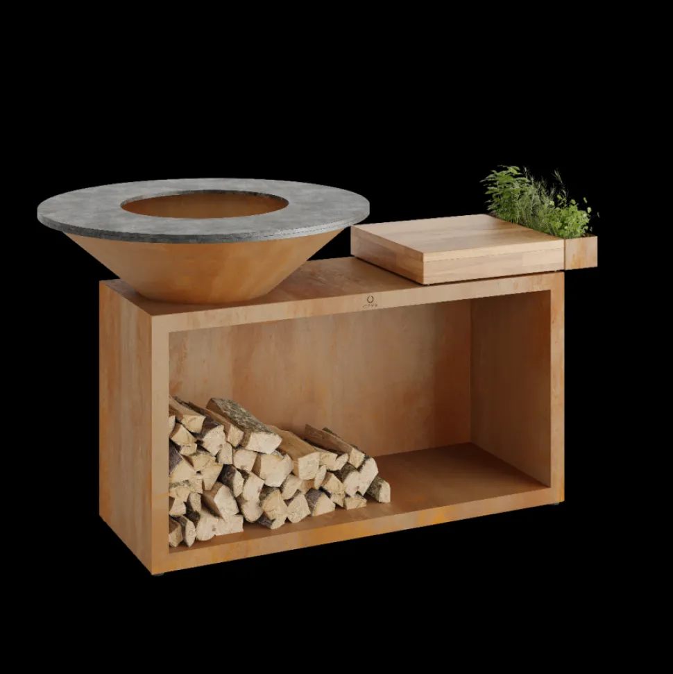 Deze alles-in-één unit combineert een onverslaanbare stijl en functionaliteit in een compact ontwerp. Het OFYR Island biedt alles wat je nodig hebt voor een ultieme outdoor kookervaring met vrienden of familie. Het bevat een OFYR kooktoestel van 100 cm met houtopslag, een werkblad en een handig accessoirebakje voor keukengerei en specerijen. Het werkblad is verkrijgbaar in teakhout of donkergrijs keramiek.