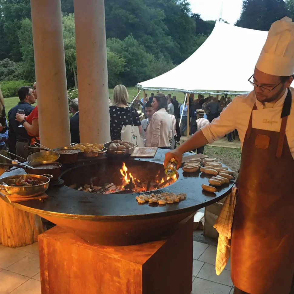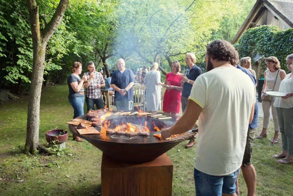 Alle OFYR kooktoestellen zijn volgens professionele specificaties vervaardigd, maar dit zeer grote model is speciaal geschikt om voor grote groepen te koken. Met een diameter van 150cm is er ruimte genoeg om 2 chefs tegelijkertijd te laten werken en groepen tot 150 man te bedienen. Voor nog meer veelzijdigheid zijn er een optionele XL grill en andere accessoires beschikbaar.