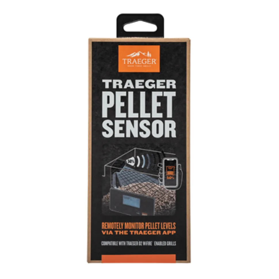 Zeg vaarwel tegen pelletpaniek. Met de nieuwe Traeger pellet sensor kan je de pellet niveaus van jouw D2 WiFIRE®-compatibele grill overal volgen met behulp van de Traeger-app. Het stuurt zelfs waarschuwingen wanneer het pelletniveau te laag is, zodat je altijd weet wanneer het tijd is om pellets te voeren. Kook met meer vertrouwen met de Traeger Pellet Sensor!