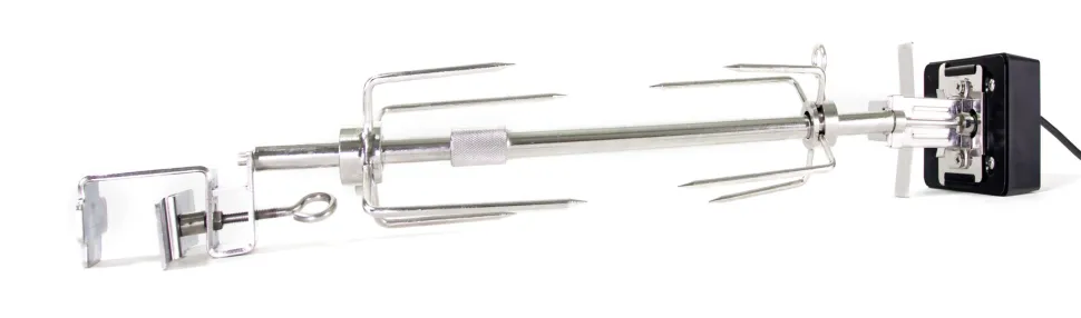 Dankzij de sterke motor en de mogelijkheid om voedsel gelijkmatig te roosteren, is de afneembare rotisserie van Grill Guru de perfecte keuze voor het bereiden van overheerlijke kip, varkensvlees en rund.
