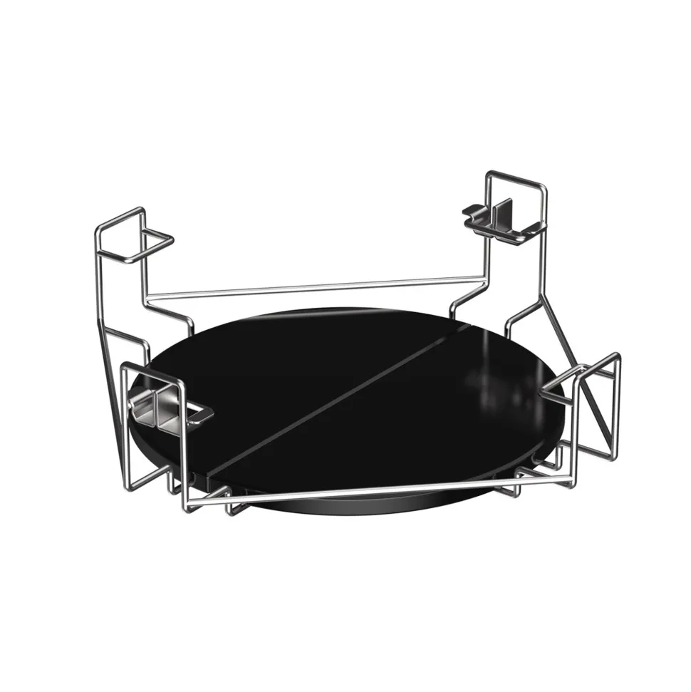 - Twee halve RVS roosters: speel met je temperatuur door je roosters in verschillende hoogtes op te stellen.
